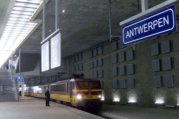 Antwerpen Centraal, 7 mei 2007. De machinist van loc 1188 wacht op het perron tot hij verder mag rijden naar Amsterdam. Hij heet Henk Rudolph, las ik in mijn mail toen ik 's avonds weer thuis was. Vandaar dat ik het leuk vind om deze foto op mijn site te zetten. Ik moest vandaag naar Brussel, dus ik was erg benieuwd hoe dat zou gaan met die Beneluxtreinen. Daar zijn de laatste tijd nogal eens problemen mee. Zo gebeurt het wel dat de locs van de reeks 11.8 na het passeren van de spanningsluis bij Roosendaal niet opschakelen naar hun volle vermogen. In dat geval mogen ze niet via de tunnel onder Antwerpen rijden, omdat ze dan de helling niet meer opkomen. Maar ik heb vandaag geen problemen gehad met de trein. |