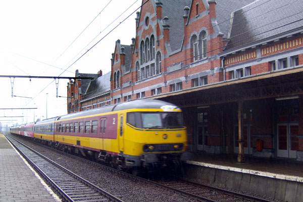 Essen (B), 7 mei 2007. Op de terugweg had ik wat tijd over, en besloot ik om van Brussel naar Roosendaal gebruik te maken van IR-treinen. Dat zal wel interregio betekenen, maar het zijn gewoon boemeltreinen die overal stoppen. In Essen had ik een half uur om rond te kijken. Een station dat duidelijk betere tijden heeft gekend, gelet op het veel te grote stationsgebouw. Internationale treinen stoppen er niet, afgezien van de uurdienst Antwerpen-Roosendaal. Op deze foto een Beneluxtrein op weg naar Brussel. Binnenkort verleden tijd, want dan rijden de snelle treinen via een andere route. In Essen kwam ik iemand tegen die mij herkende van mijn site: een Nederlander die bij de NMBS aan het solliciteren is als machinist. Hij maakt een goede kans, zei hij, hoewel hij 57 jaar is. |
