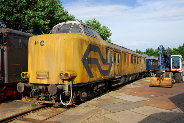 Beekbergen, 11 augustus 2012. Een bijzonder cabinebeeld uit vervlogen tijden dat nog immer gekenmerkt wordt door een combinatie van Tilburgse arbeid en een vleugje internationale allure. Het enige bewaard gebleven exemplaar van de 'Benelux-stuurbak' deed na haar Nederlands-Belgisch avontuur nog geruime tijd dienst als meetrijtuig. Daarna kwam zij in handen van de VSM. Op de remkraan en wat meters na doorstond de cabine de tand des tijds gelukkig goed. Foto Pim de Rijke. |