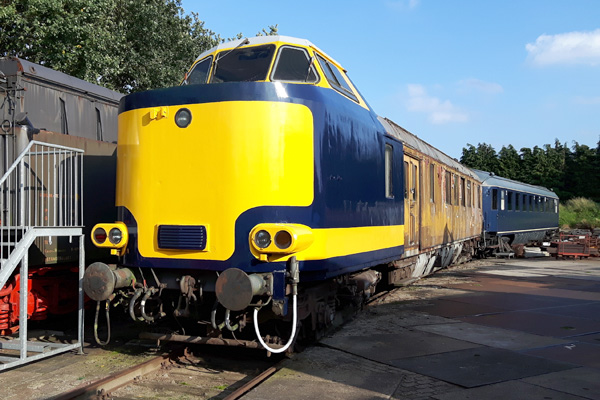 Beekbergen, 15 juni en 14 oktober 2017. Dit rijtuig heeft niets met de Veluwe te maken, noch met stoomtreinen. Maar nu het er toch staat dacht de Veluwse Stoomtrein Maatschappij: laten we er iets leuks van proberen te maken. Het rijtuig deed ooit dienst in Beneluxtreinen die werden geduwd of getrokken door Belgische locs reeks 25.5. Foto's Hendrik-Jan Bakker. |