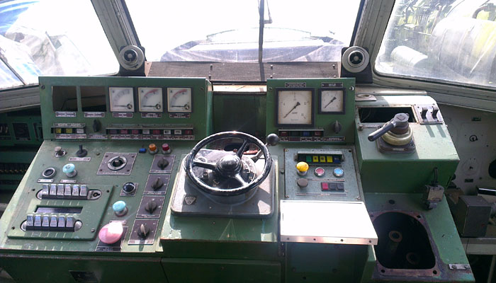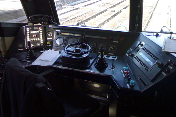 Rotterdam, 4 juni 2007. Stuurtafel van een Benelux-stuurstandrijtuig. Van hieruit wordt de locomotief, een Belgische reeks 11.8, bediend. Ook deze rijtuigen zijn inmiddels verleden tijd. Foto Marc Schouwenaars. |