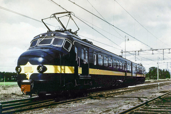 Treinstel uit de serie NS 1201-1208, kort na de aflevering. Foto NS, Utrechts Archief 832906. Kleuren digitaal opgefrist. |