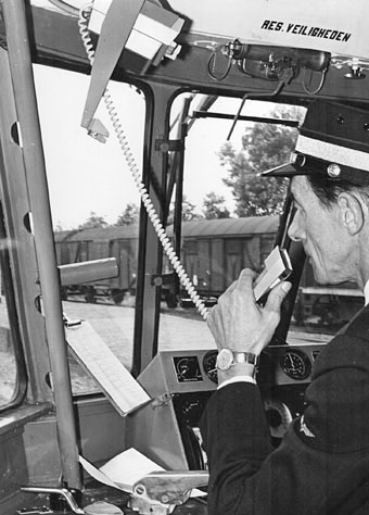 Op 6 oktober 1967 vond een proefrit plaats ten behoeve van een nieuw beveiligingssysteem: de Centrale RadioVerkeersleiding (CRVL). Treinstel DE2 100 reed als trein 8720 van Groningen naar Roodeschool. Foto's NS, collectie Klaas Nauta. |