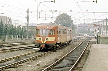 Aachen Hbf, 15 augustus 1970. Motorrijtuig 43 als trein naar Maastricht. |
