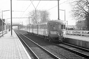 Bussum Zuid, 3 april 1969. Treinstel 96 tijdens een overbrengingsrit. |