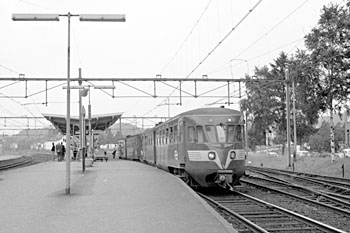 Franeker, 27 juli 1970. Treinstel 79. Mijn broer Leo staat op het perron. Klik hier voor meer foto's in Friesland. |
