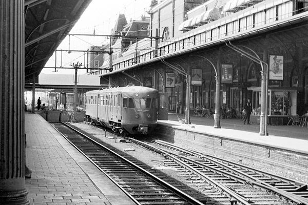 Aachen Hbf, januari 1966. Een DE1 vertrekt naar Maastricht. Foto Rolf Siedler, collectie Guido Rademacher. |