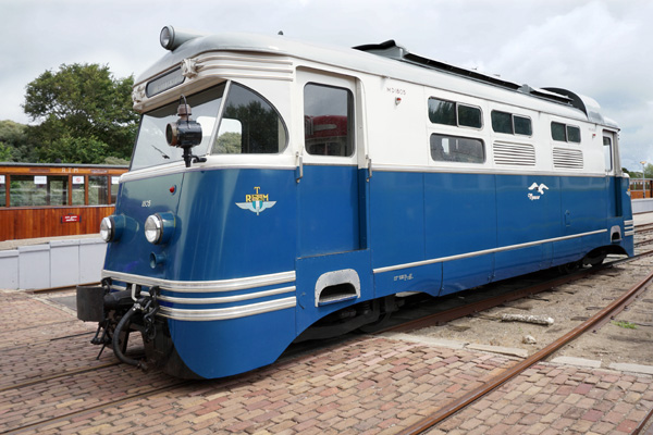 Bilthoven, 15 juli 2005. Gepimpte Plan V 446 op weg naar Amersfoort. Dieseltreinen en elektrische treinen hebben lange tijd verschillende kleuren gehad. Waarom eigenlijk? Voor de reizigers maakt het niet uit. De eerste elektrische stroomlijntreinstellen werden door het publiek hardnekkig "Diesels" genoemd. Misschien was het voor de machinisten: je stapt in een groene trein, denk er aan dat je altijd een bovenleiding nodig hebt. Vanaf begin 1968 werden de Nederlandse treinen geleidelijk allemaal geel geschilderd. Totdat het personen- en het goederenvervoer gescheiden werden: de goederenlocomotieven moesten toen rood worden. Maar overschilderen kost geld, dus na een poosje is men daar ook weer mee gestopt. Overigens ben ik van mening dat blauw de mooiste kleur is voor treinen. |