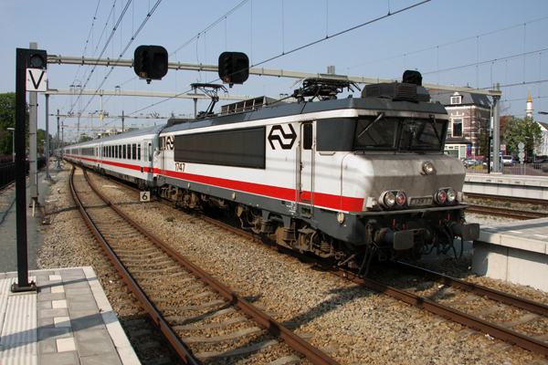 Hilversum, 15 april 2009. We mogen toch wel spreken van een gemiste kans, als we loc 1747 in deze beschildering zien. Foto en bewerking Henk Koster (2024). |