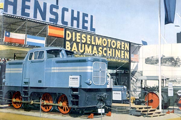 Henschel dieselhydraulische locomotief DH 360 op de Technische Messe in Hannover, 1954 (fabrieksfoto). |