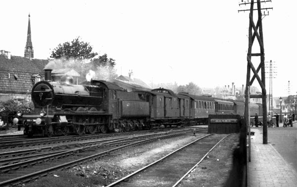 Hilversum, juni 1935. Loc 3820 (depot Utrecht) met trein D196 uit Amsterdam. Deze trein zal