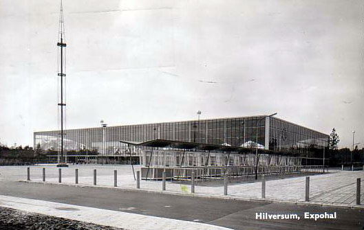 De Expohal, overgenomen van de Wereldtentoonstelling in Brussel, kort na de ingebruikname in Hilversum. Prentbriefkaart.