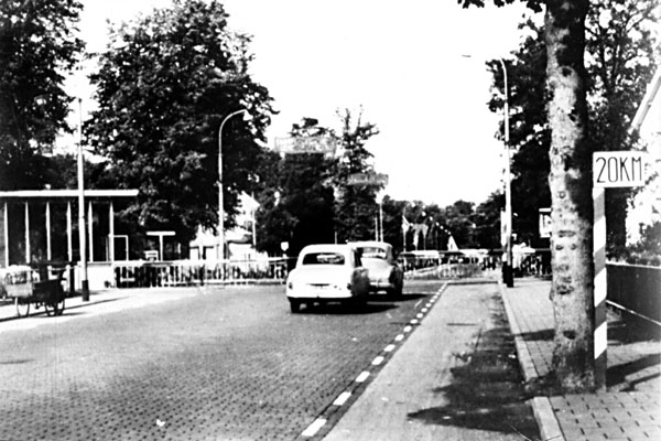 Overweg in de Soestdijkerstraatweg, jaren vijftig. Gezien vanuit de richting Baarn. Links