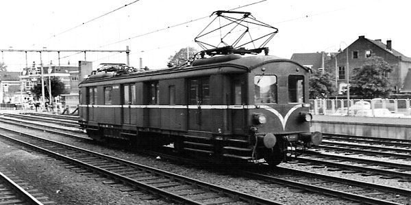 Hilversum, 21 mei 1966. Treinstel 762 is als trein 2826 op weg van Utrecht naar Hilversum. De 762 hield als enige jarenlang deze snor. Links op kopspoor 11d staat treinstel 750, het materieel dat dienst heeft gedaan bij de opening van de halte Bussum-Zuid. De foto is gemaakt vanaf de overweg in de Oude Amersfoortseweg, vlak bij de halte Soestdijkerstraatweg (later Sportpark). Foto Adriaan Pothuizen. |
