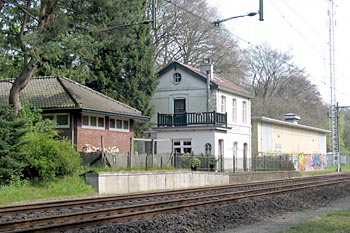 Hulshorst, 25 april 2005. Bij de aanleg van de spoorlijn naar Zwolle werd door een landeigenaar, als voorwaarde voor verkoop van grond, bedongen dat er ter plekke een halte zou worden geopend. Dit resulteerde in station Hulshorst, dat in 1876 na de uitbreiding met een tweede verdieping zijn huidige vorm kreeg. Aangezien het station op zo'n drie kilometer van het centrum van Hulshorst ligt, moest het station het de laatste decennia vooral van het toerisme hebben. Uiteindelijk verdween het station op 31 mei 1987 uit het spoorboekje, toen er door de opening van Amersfoort Schothorst geen tijd in de dienstregeling meer overschoot voor een stop in Hulshorst. Het stationsgebouw doet nu dienst als woning. Het gele gebouw rechts is een onderstation. |