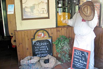 Hulshorst, 25 april 2005. Restaurant RailRoads was op het moment van mijn bezoek gesloten. Door het raam fotografeerde ik het bord met de wervende tekst "Welkom in de wereld van stoom en kolengruis" en een oude foto van station Hulshorst. In 2017 heette het restaurant Hof van Hulshorst. Ook toen was het gesloten (ik kies altijd de verkeerde dag uit als ik Hulshorst bezoek). |