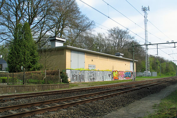 Hulshorst, 25 april 2005. Het station ligt kilometers verwijderd van Hulshorst, vandaar dat ik tegen mijn gewoonte in deze speurtocht per bolide heb gemaakt. Op de terugweg zag ik een met gruis bedekt pad waar je 60 mag rijden. Dat heb ik dus gedaan, de omgeving in een gigantische stofwolk achter mij latend. |