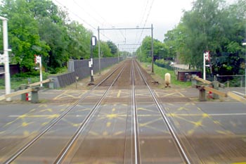Bilthoven, 13 mei 2004. Nadering van de ADOB, gefotografeerd vanuit de cabine van een trein naar Baarn. Op de