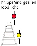 gele lampen. Deze lampen hangen merkwaardig genoeg niet op remwegafstand. Een zware of snel rijdende trein zal
