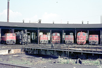 er niet meer. Diverse stoomlocs stonden koud op een zijspoor, alleen een enkele tenderloc serie 93 maakte nog een