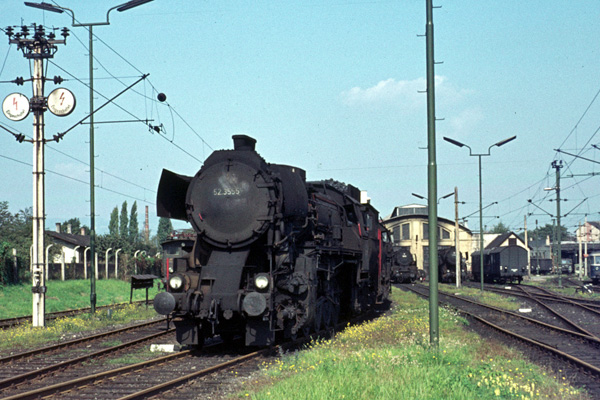 Heizhaus Linz, 19 september 1971. Loc 52.3555. Op de tweede foto e-loc 1080.09 en stoomloc 52.4551.