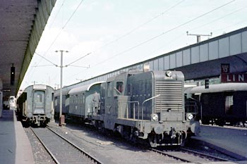 Linz Hbf, 19 september 1971. Loc 2045.16. Deze uiterst rumoerige diesellocs deden dienst op de lijn naar