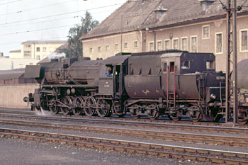 Linz Hbf, 19 september 1971. Loc 1042.532 en een 52'er met een slecht leesbaar nummer.