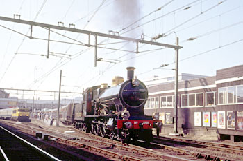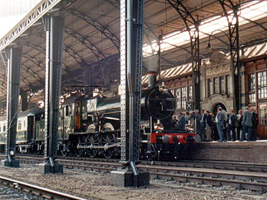 Utrecht, 25 juni 1989. De eerste stoomrit in het kader van NS 150. Loc 3737 vertrekt naar Groningen. |