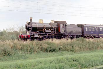 Meteren, 20 augustus 1989. Loc 3737 rijdt over de oostelijke Betuwelijn. Bij Meteren liggen tegenwoordig ook verbindingsbogen tussen de lijn Geldermalsen-Den Bosch en de Betuweroute. Foto Mike Morant. |