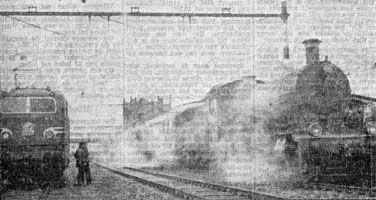 Het Vrije Volk, 8 januari 1958. De krant besteedde uitgebreid aandacht aan de afscheidsrit van loc 3737, hier gefotografeerd in Geldermalsen. De loc zal worden opgeborgen in het Spoorwegmuseum, dat is ingericht in het vroegere Maliebaanstation. |