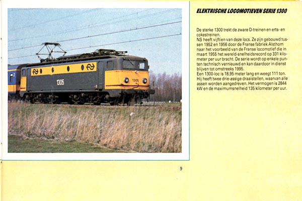 Op de foto loc 1304 in Amsterdam CS op 2 oktober 1968. Daarnaast de zomerdienstregeling 1961, met loc 1302 in een on-Nederlands landschap. Klik hier voor meer spoorboekjes. |