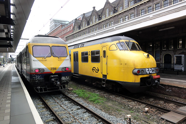 Maastricht, 8 september 2015. NMBS 398 ('Break') en NS 444 ('Plan V'). Ik maakte deze foto toen we met de trein op weg waren van Racour naar Schin op Geul. |