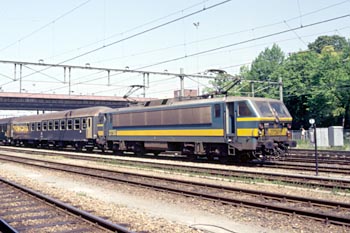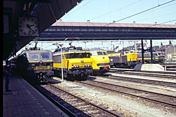 Maastricht, 13 mei 1988. Loc 2756 met materieel voor de trein naar Italië. Op de tweede foto van links naar rechts NMBS 2756, NS 1645, een plan V, NS 1201 en NMBS 2742. |