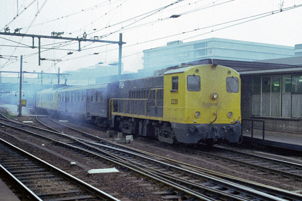 Utrecht, 4 mei 1984. De meettrein van het Centrum voor Technisch Onderzoek (CTO) tussen loc 2239 en 2247.