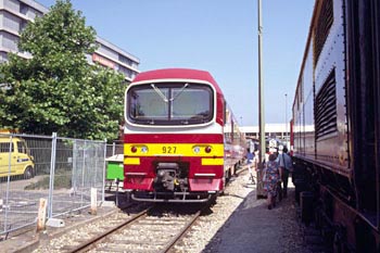 Utrecht, 25 juni 1989. Belangstelling voor de Britse versie van de "Sprinter". De rechterfoto is gemaakt door Dave Coxon, een van de begeleiders van dit treinstel. Meer foto's op www.traintesting.com/utrecht.htm |
