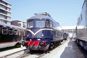 Utrecht, 25 juni 1989. Treinstel 252 en loc 1010 tijdens de jubileumtentoonstelling NS 150. |
