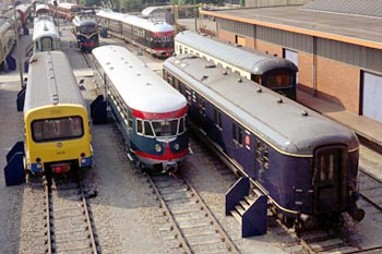 Utrecht, 25 juni 1989. Enkele van de mogelijkheden om een machinistencabine vorm te geven. Treinstel 41 van het Spoorwegmuseum naast Wadloper 3104. Op de tweede foto "duikbril" 927 van de NMBS. |