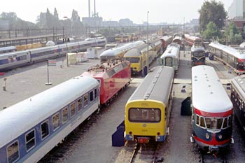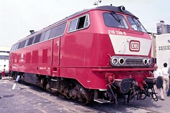 Utrecht, 25 juni 1989. Loc V 200 007 was aanwezig met dubbeldeksmaterieel van de vroegere LBE (Lübeck-Büchener Eisenbahn). Deze combinatie zou ook enkele ritten door Nederland verzorgen. |