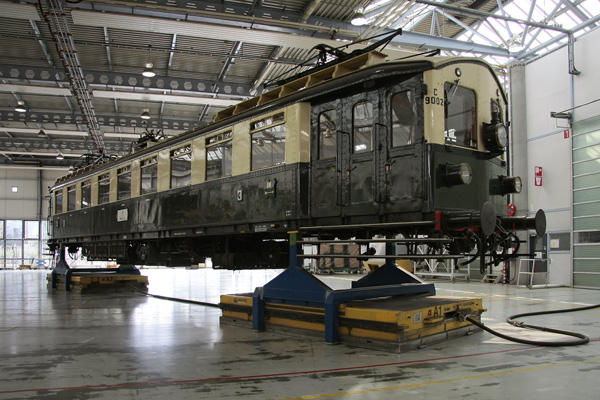 Haarlem, 20 september 2014. In het kader van het 175-jarig jubileum opende NedTrain de deuren van haar werkplaats. Treinen over rails laten rijden is zó 1839. Vandaar dat men nu aan het experimenteren is met treinen op luchtkussens. Motorrijtuig C9002 "Jaap" is daartoe gemonteerd op een proefopstelling. Foto Henk Koster. |