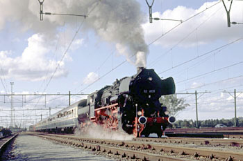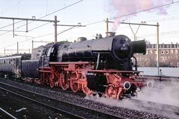 Amsterdam Muiderpoort, 6 oktober 1991. Loc 18 201 keert terug naar Duitsland. De trein rijdt via Hilversum. |