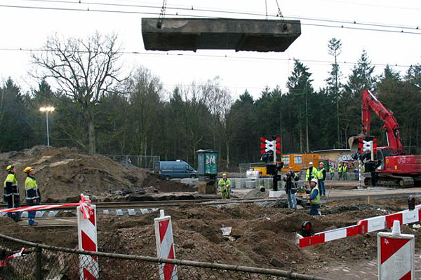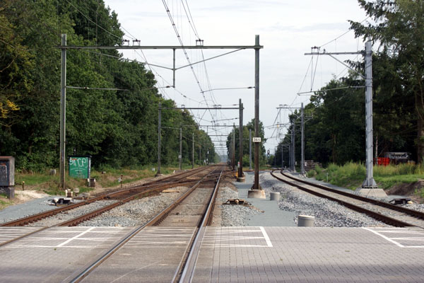 deze haaks op het spoor te staan. Zo’n ‘haakse overweg’ is vereist voor de veiligheid van de weggebruikers. Na het verleggen