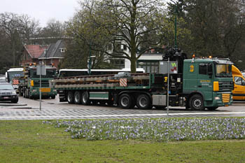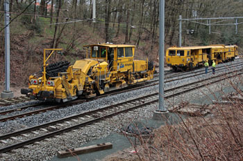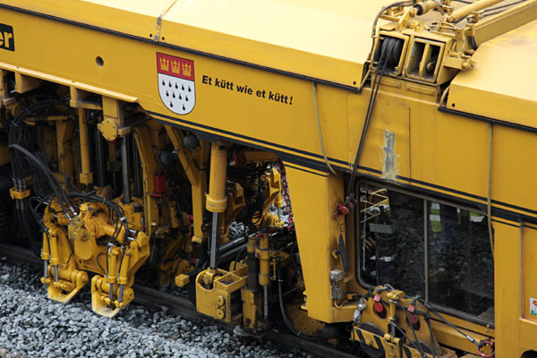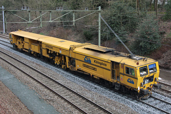 Baarn, 4 april 2010. Een Unimat van de firma Kölngleis in actie. Verlopen de werkzaamheden voorspoedig? Tja, het gaat zoals het gaat. Of zoals ze in Keulen zeggen: et kütt wie et kütt! Foto's Henk Koster. |