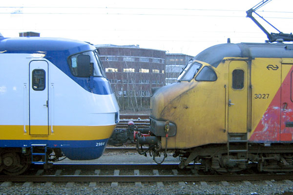 Hengelo, 5 april 2006. mP 3027 verleent via een sleepkoppeling de helpende hand aan SGMm 2984. Foto Mark de Koning. |