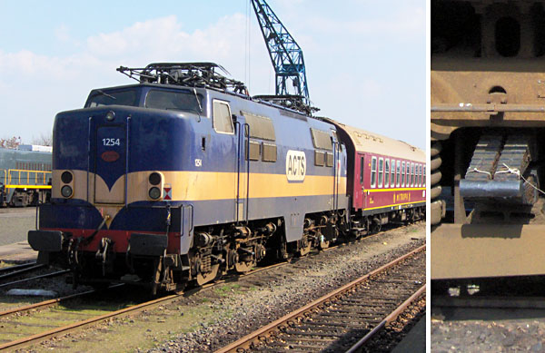 Lieren, 16 april 2006. ACTS-loc 1254 staat bij de VSM. Zo te zien omdat er iets moet worden gerepareerd. De tractiemotoren worden in Tsjechië gerepareerd en zullen daarna bij de werkplaats van de VSM weer worden teruggeplaatst. Foto Pascal Esselink. |