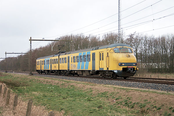 Terschuur (Dronkelaarseweg), 1 april 2006. Treinstel 888 als trein 7429 op weg van Amersfoort naar de Valleilijn. Over een poosje gaan hier blauwe treinstellen rijden, maar op 1 april 2006 was dat nog niet het geval. Dit ondervond ook fotograaf Rob van der Woude. |