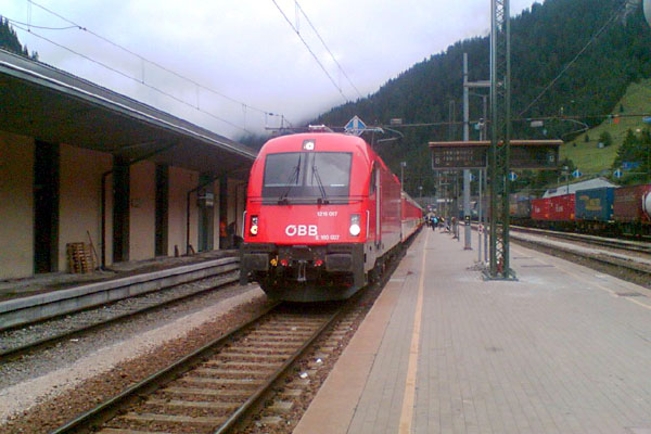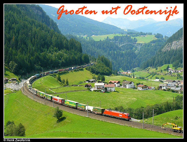 Groeten uit Oostenrijk. Sankt Jodok am Bremmer, 30 juli 2009. De locomotief is een Taurus. Foto Henk Zwoferink. |