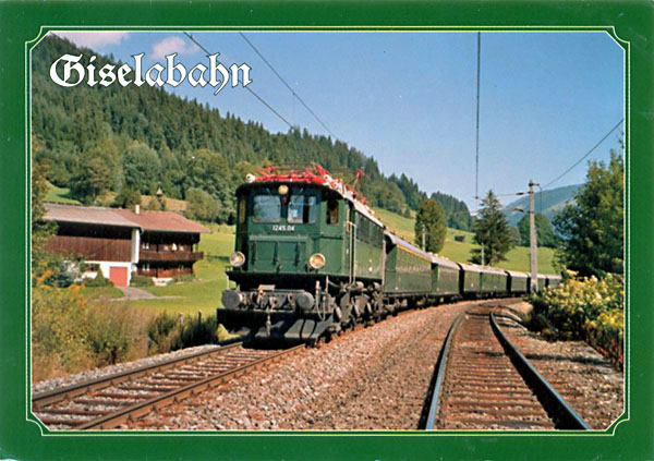 ÖBB-loc 1245.04. Vanaf 1934 zijn 33 locs van dit type gebouwd voor de Oostenrijkse spoorwegen (Reihe 1070, later Reihe 1245) en 8 voor de Duitse spoorwegen (Baureihe E45). Het waren goederentreinlocomotieven die ook geschikt waren voor lichte personentreinen. De laatste Oostenrijkse loc is in 1995 uit dienst gegaan. Prentbriefkaart Giselabahn. |