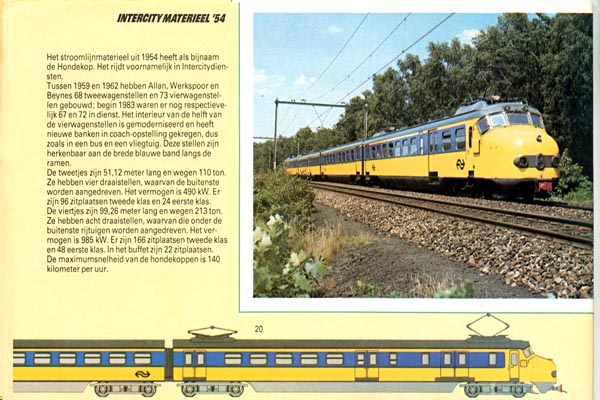 Elektrische treinen in Nederland. Deel 2. Door Carel van Gestel e.a. Uitg. de Alk, Alkmaar, tweede druk 1997. ISBN 9060139895. Dit deel beschrijft het stroomlijnmaterieel 1940, 1946, postrijtuigen Pec, materieel 1954 (Hondekoppen) en het Beneluxmaterieel uit 1957. Hondekoppen en Muizeneuzen. Door Carel van Gestel e.a. Uitg. de Alk, Alkmaar, 2003. ISBN 9060132173. Dit boek kan worden gezien als aanvulling op deel 2 van "Elektrische treinen in Nederland." De Hondekoppen en Muizeneuzen, ook bekend als Materieel '54 en '46, zijn inmiddels van het spoortoneel verdwenen, maar leven onverminderd voort in de herinnering van menig spoorwegliefhebber. Dit boek geeft een compleet beeld van de ontwikkelingen en lotgevallen van dit roemruchte elektrische NS-materieel en toont het op talrijke interessante locaties in Nederland. |