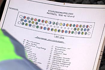 Watergraafsmeer, 17 april 2004. De stuurstroomkoppeldoos van treinstel 273 wordt doorgemeten. De treinstellen 766 en 273 konden niet altijd goed met elkaar optrekken, afhankelijk van de koppelingen waarmee ze met elkaar waren verbonden. |