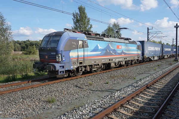 Utrecht Lunetten, 28 september 2025. Loc 193 520 van SBB Cargo International in 'Alppiercer'-huisstijl.
